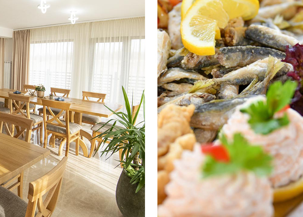 Descoperiți în locația noastră o sală de mese cu preparate proaspete din pește, o curte spațioasă și zone de grătar, totul aproape de Lac și Mare. Puteți relata poveștile captivante ale zilei, împărtășindu-vă experiențele cu ceilalți oaspeți, cuvinte însoțite de zâmbete și prietenie sinceră.